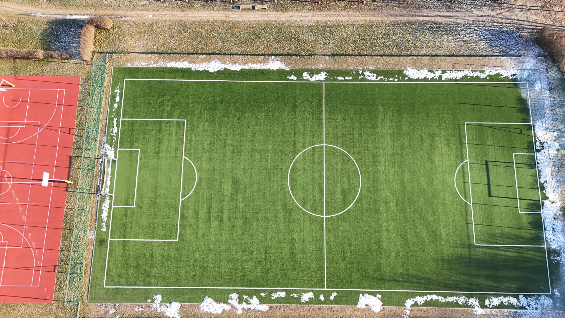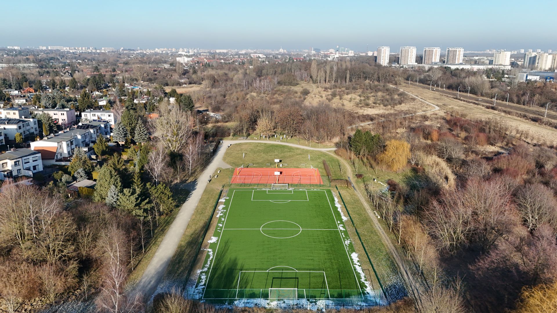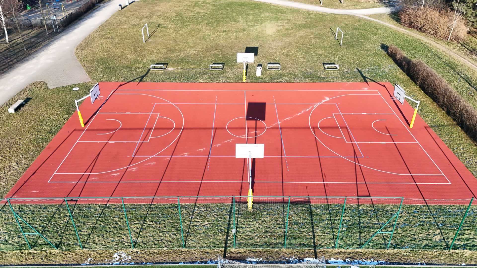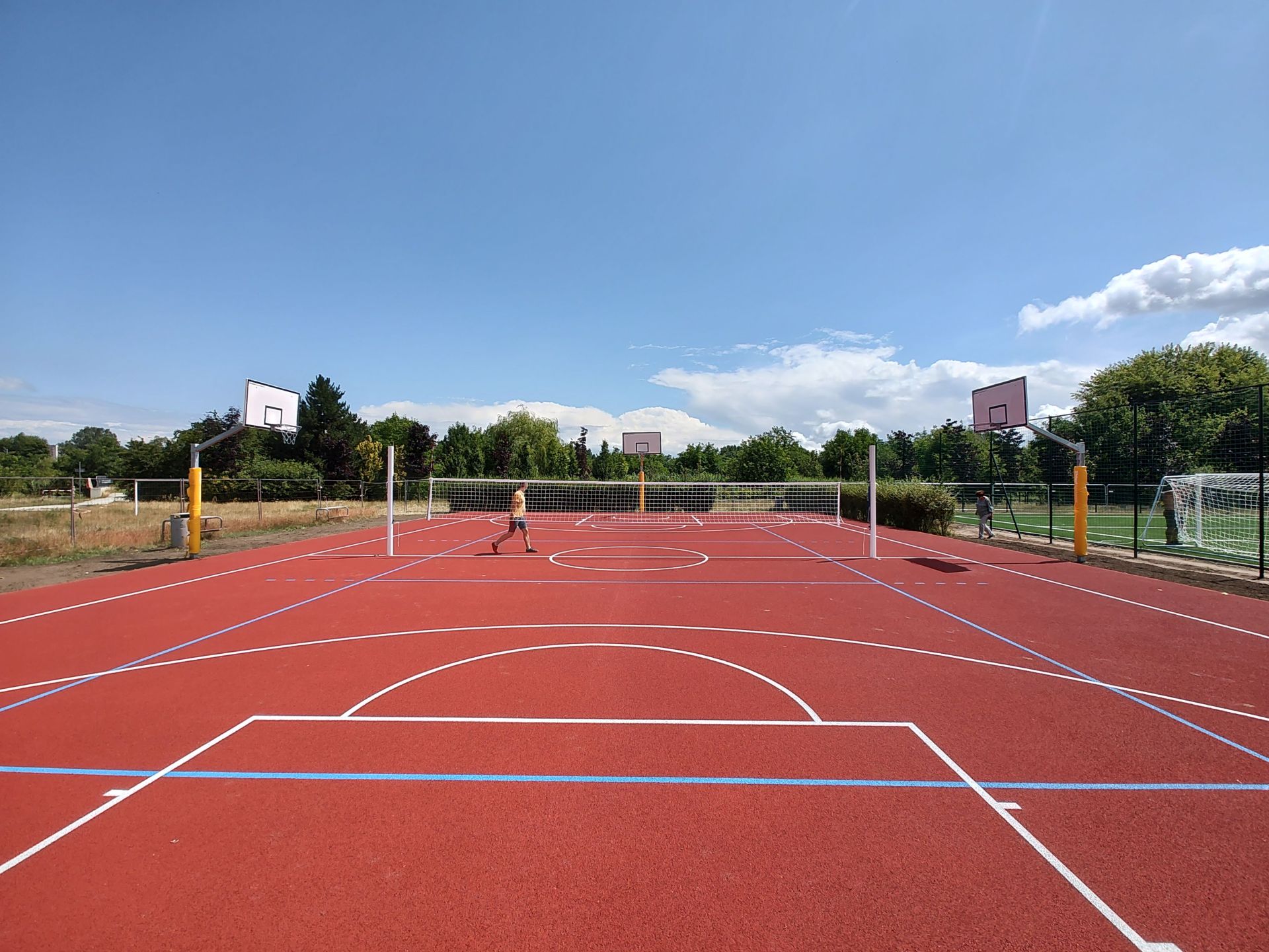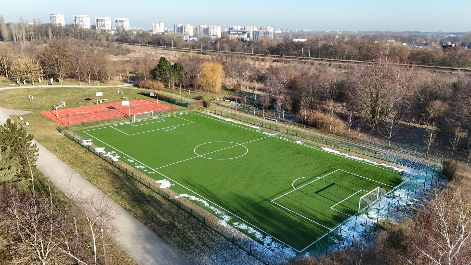 Zespół ogólnodostępnych boisk sportowych składający się z poliuretanowego boiska wielofunkcyjnego oraz boiska do piłki nożnej z wypełnieniem z korka